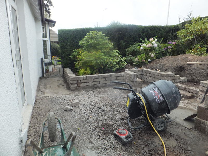 Our Dundee client wished she had more space to enjoy entertaining friends and family. We proposed taken away have the lawn to achieve this, with supporting retaining walls.