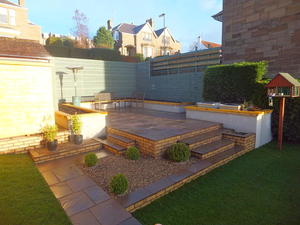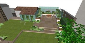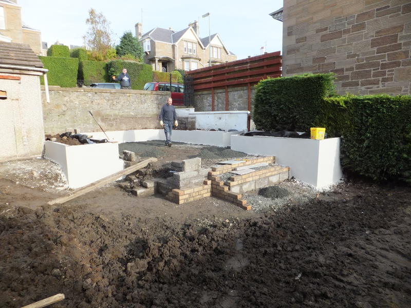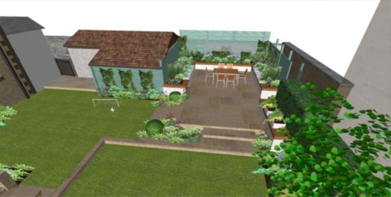 Our Dundee clients recently moved into this victorian villa and invited us to come up with proposals to re-design their back garden. The current situation is a mixture of raised patio, beds, decking with sloping lawns and "bolt on" features added in previous years. The brief was for a fresh contemporary look but keeping in mind the period property.