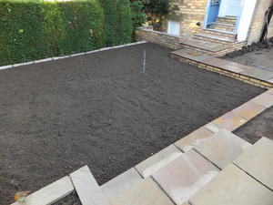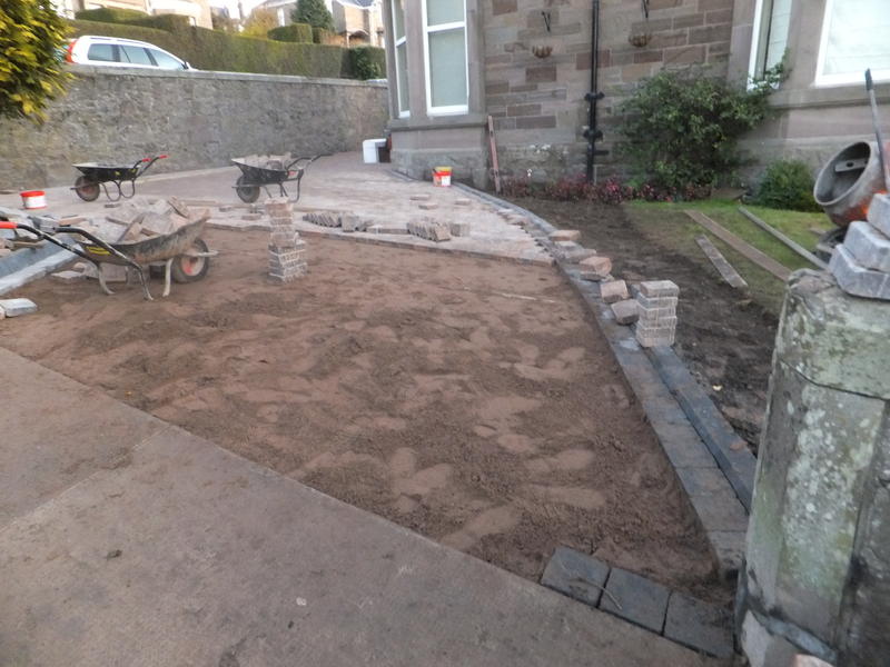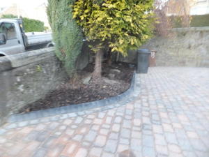 The extensive drivewaywas resurfaced by replacing the gravel with a rustic tumbled edge block paving.