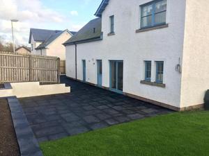 We provided the customer with our very popular computer based presentation of how their garden would look following full installation of steps and paving and suggested a black limestone to compliment the aspects of the property.